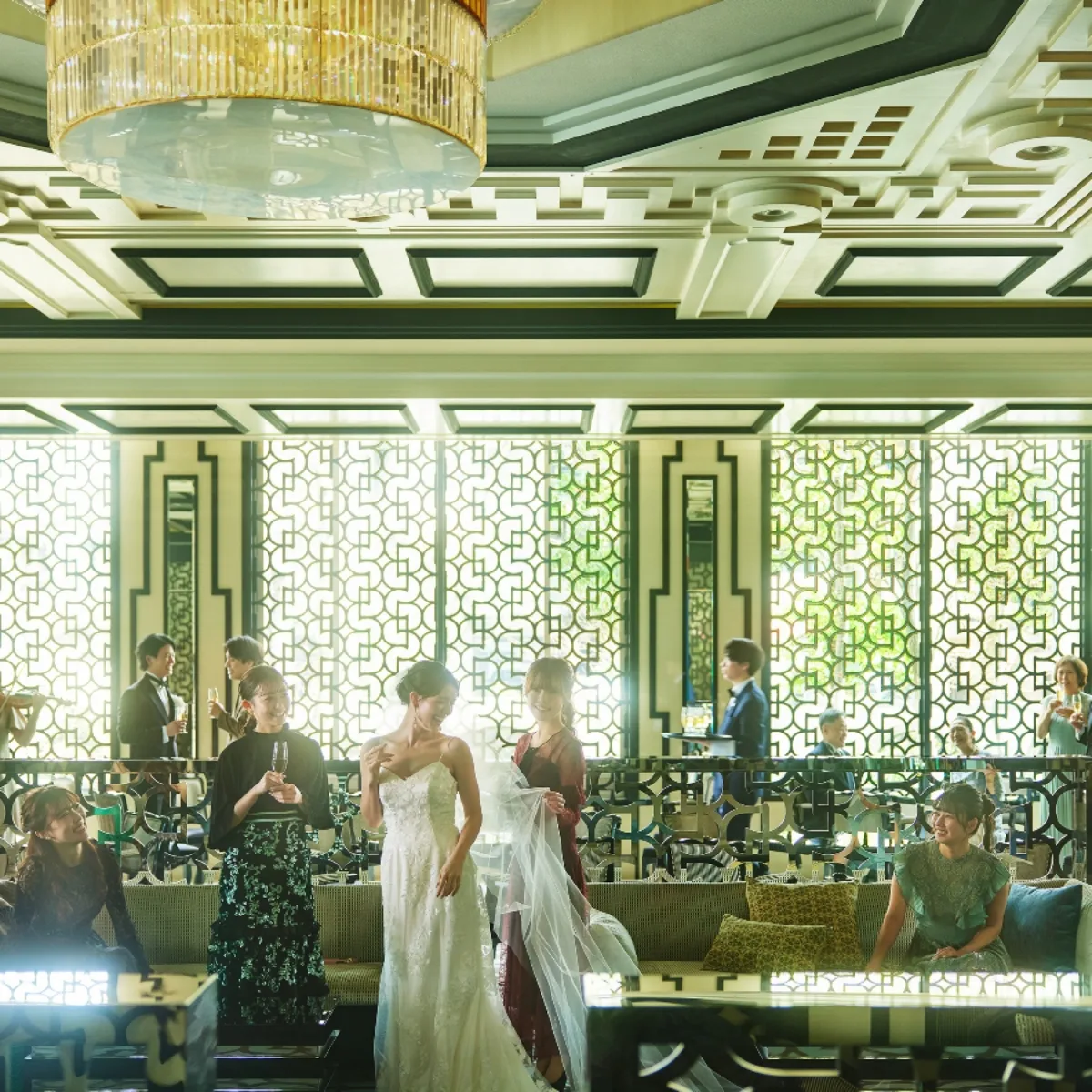 特別な1日の始まりはエントランスの煌めくシャンデリアで迎賓。豪華なインテリアやコンフォタブルな空間はすべてが絵になるフォトスポット。ロビーやラウンジなど随所までこだわったスペースは贅を極めた洗練空間。